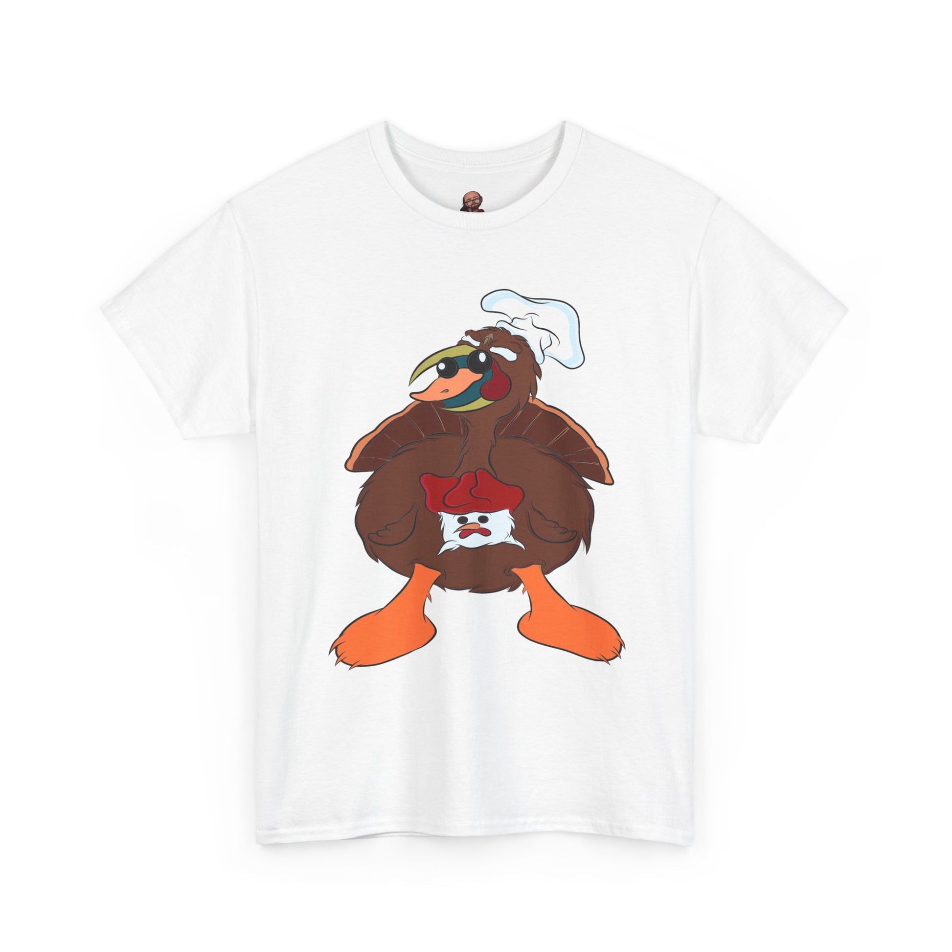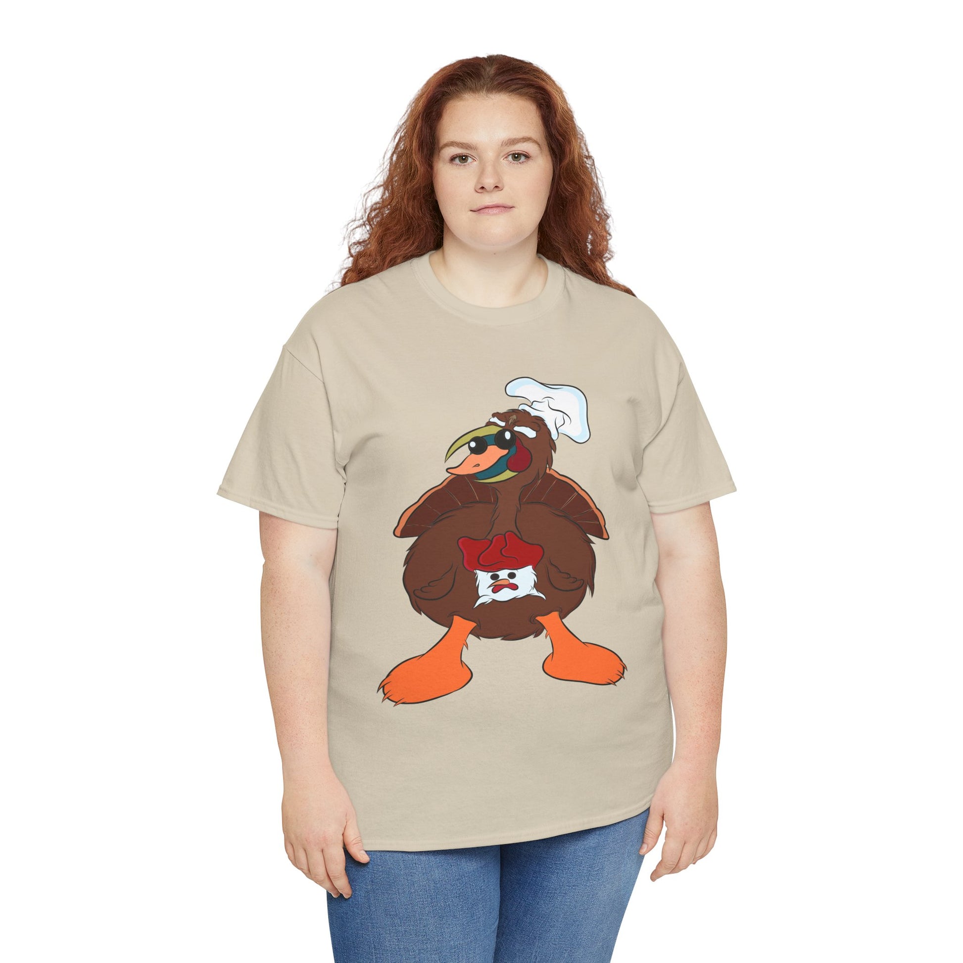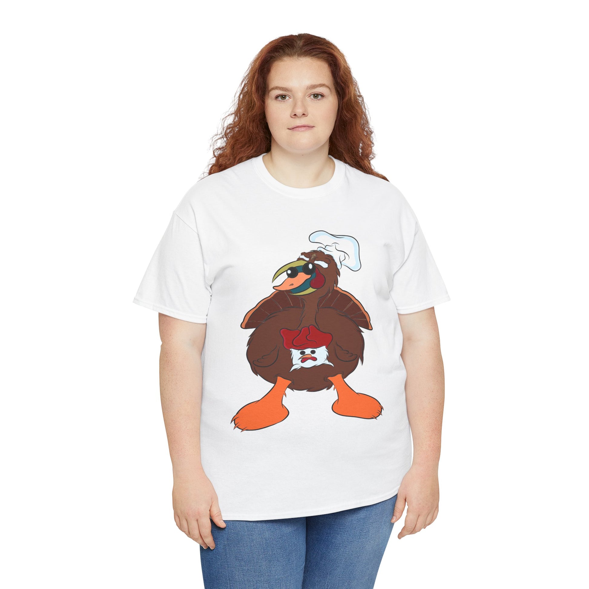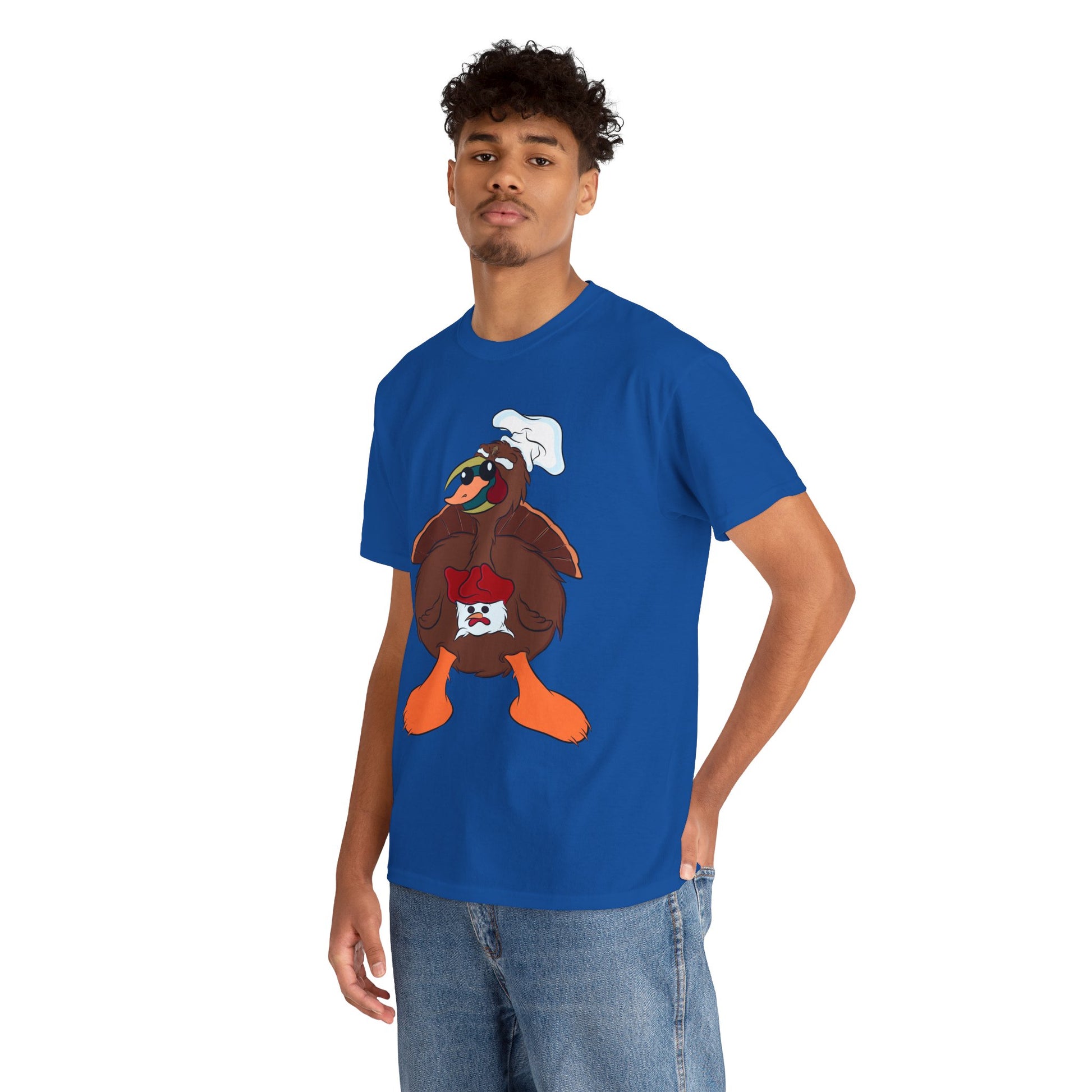 A Derpy TurDucKen design printed on a comfortable and durable unisex heavy cotton tee. This tee is perfect for those who enjoy quirky and fun designs, and it can be worn casually or for special occasions. Ideal for adults looking for a unique and humorous piece to add to their wardrobe. This tee is great for Thanksgiving and holiday celebrations.