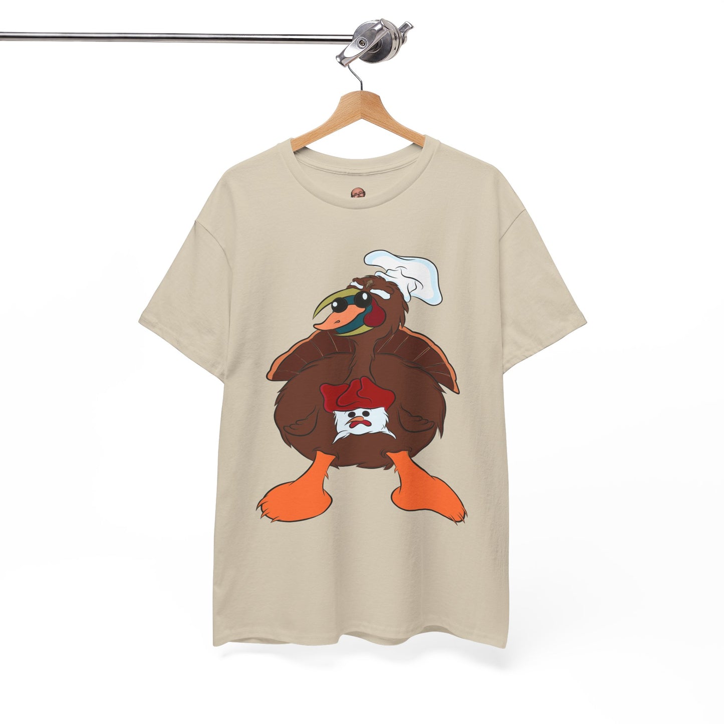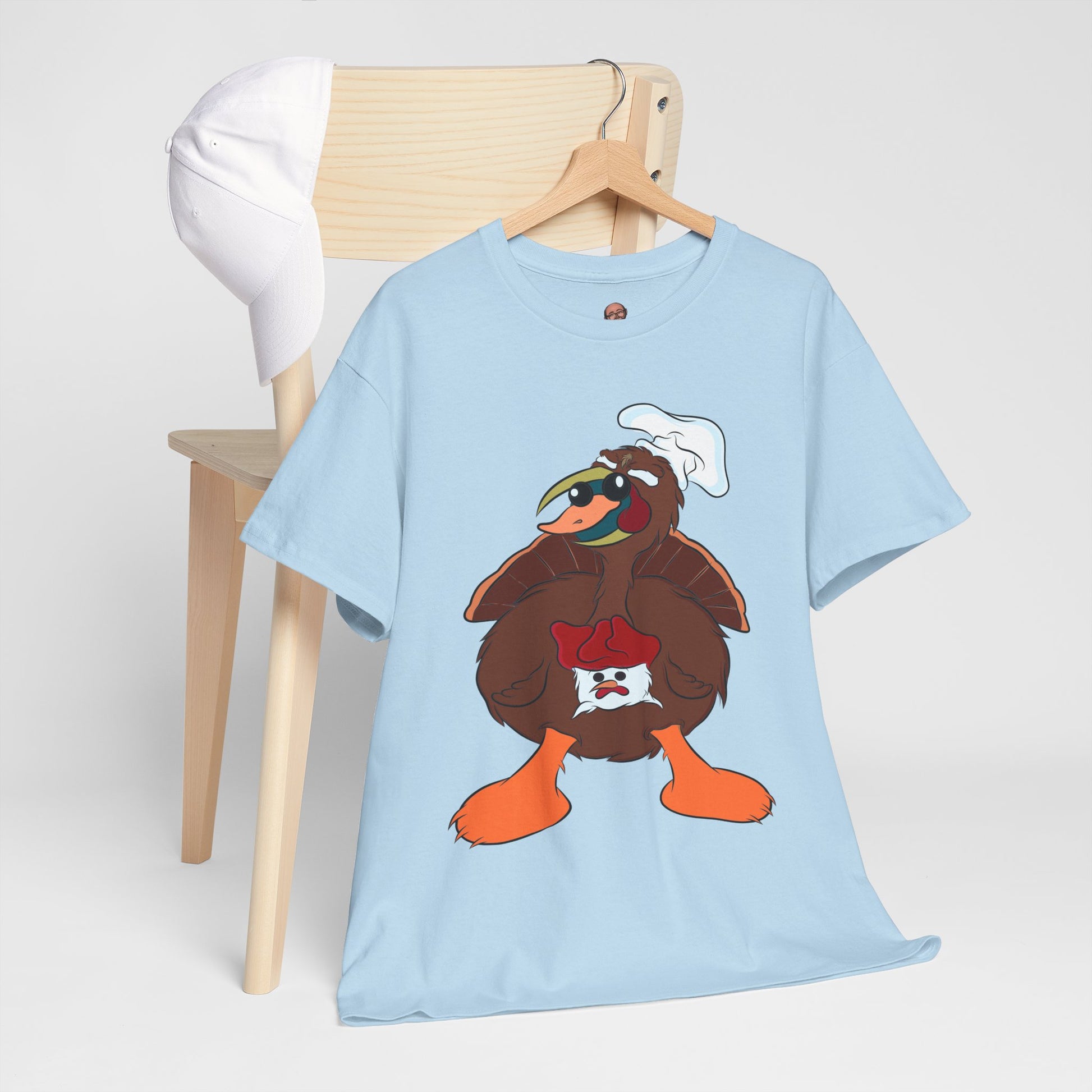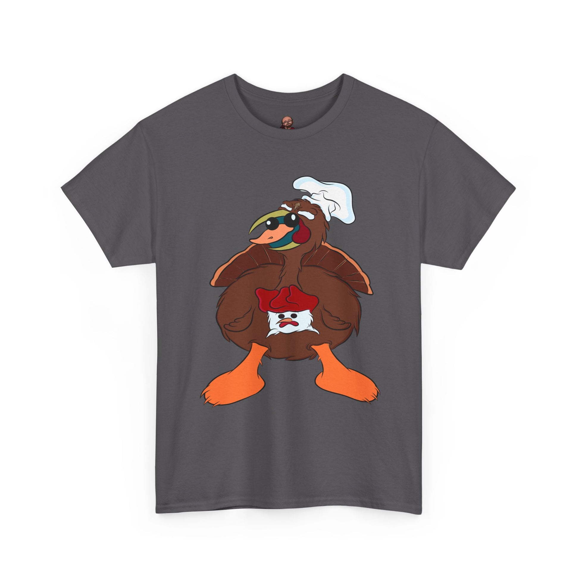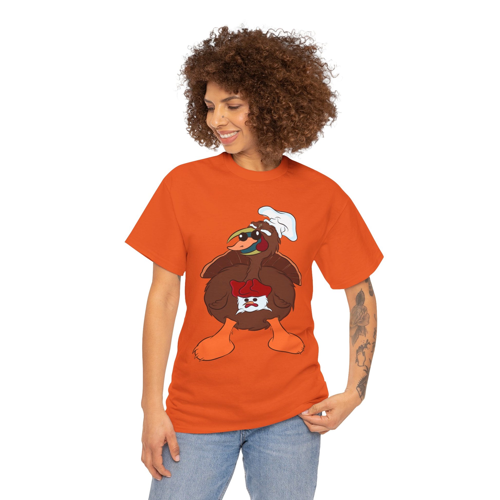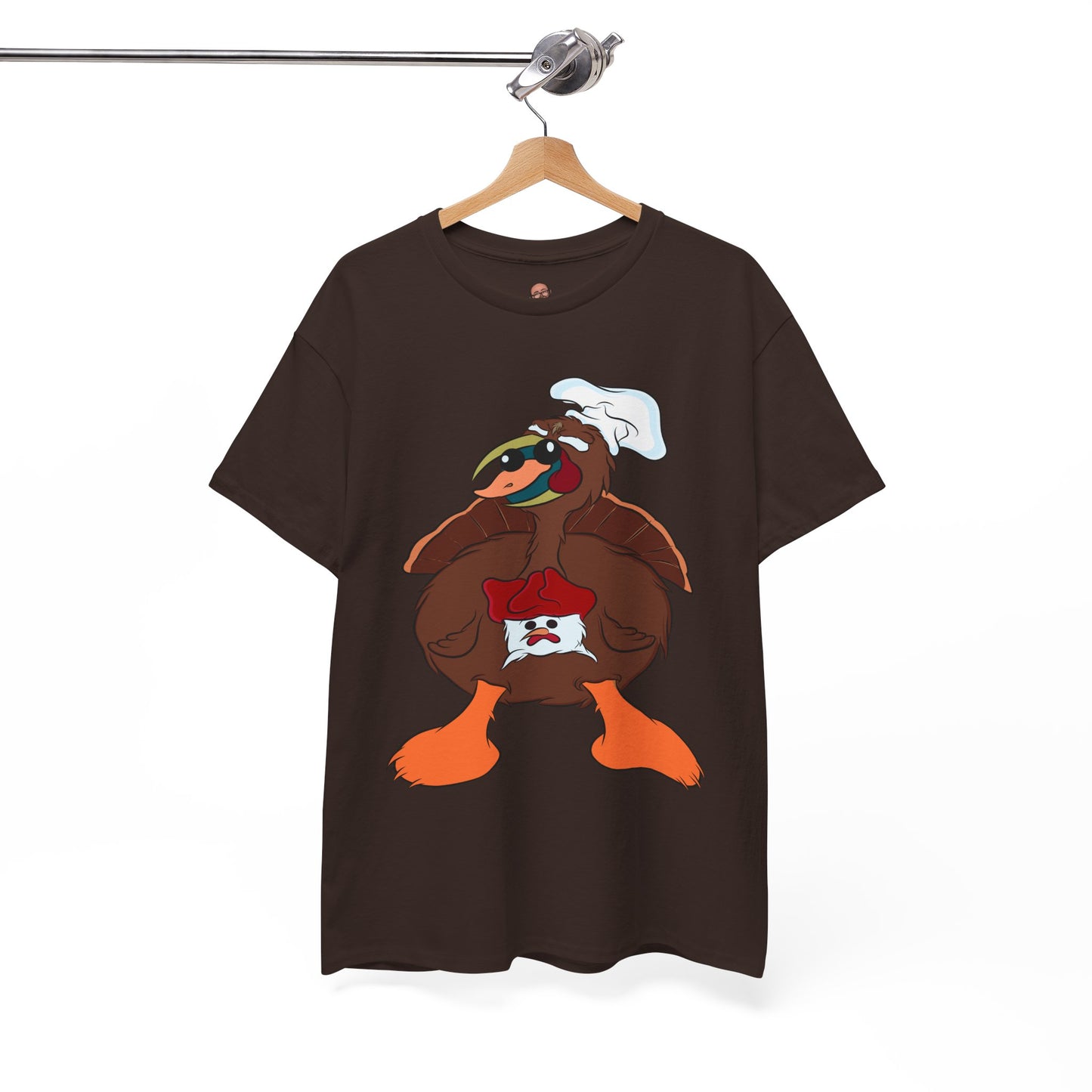 A Derpy TurDucKen design printed on a comfortable and durable unisex heavy cotton tee. This tee is perfect for those who enjoy quirky and fun designs, and it can be worn casually or for special occasions. Ideal for adults looking for a unique and humorous piece to add to their wardrobe. This tee is great for Thanksgiving and holiday celebrations.